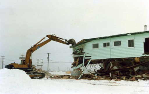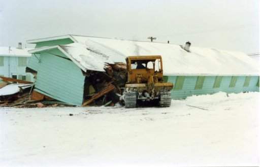 Cook house being torn down, was used as school after fire at Matonabbee